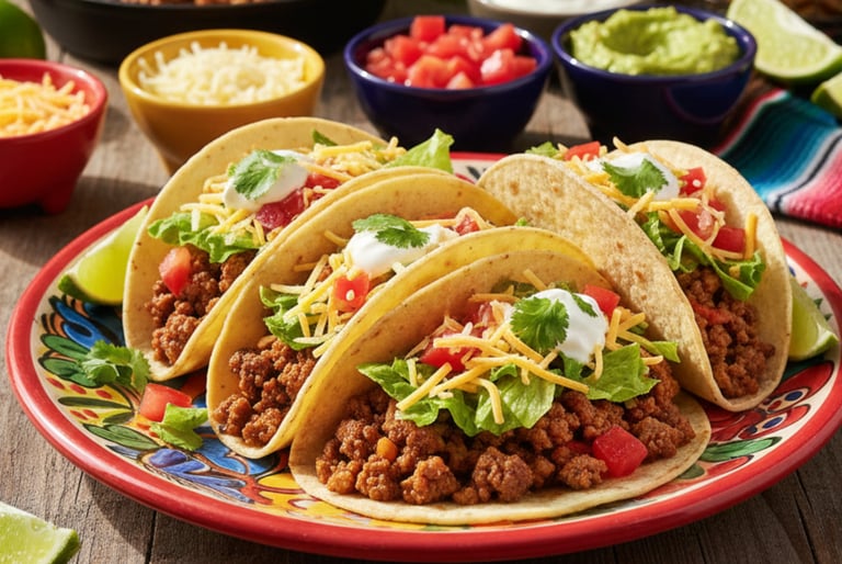 Beef tacos are the ultimate crowd-pleasing meal that brings everyone to the table with smiles. These classic tacos feature perfectly seasoned ground beef, warm tortillas, and all your favorite fresh toppings like lettuce, tomatoes, cheese, and sour cream. They're fun to eat, endlessly customizable, and turn dinner into an interactive experience where everyone can build their perfect taco. Whether it's Taco Tuesday, a casual weeknight dinner, or feeding a hungry crowd, tacos never disappoint.