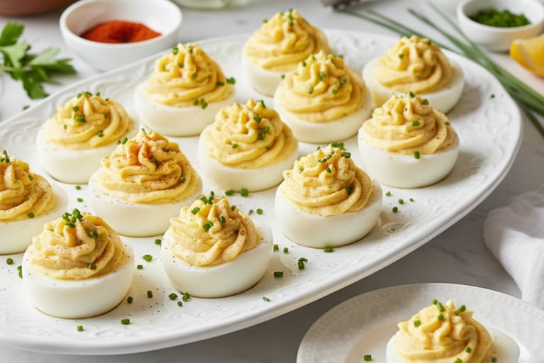 Classic deviled eggs are the ultimate party appetizer that delivers rich, creamy, tangy flavors in elegant bite-sized portions. These timeless crowd-pleasers feature perfectly hard-boiled eggs with smooth, golden yolks transformed into a velvety filling with mayonnaise, mustard, and a hint of tang. Whether you're hosting a holiday gathering, bringing a dish to a potluck, planning Easter brunch, or just craving a protein-packed snack, this foolproof recipe produces picture-perfect deviled eggs every single time.