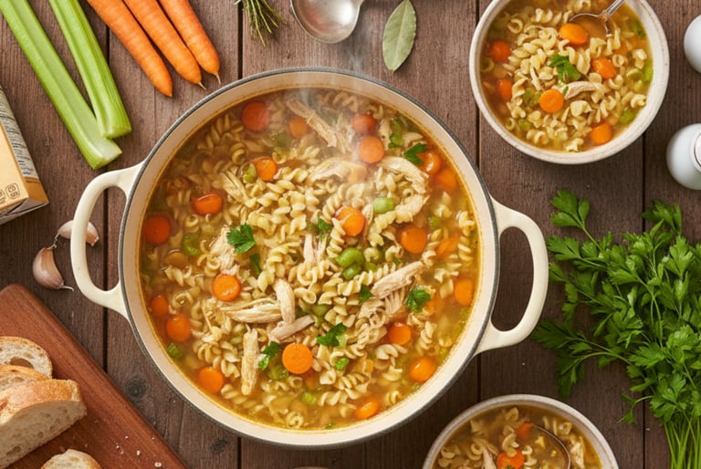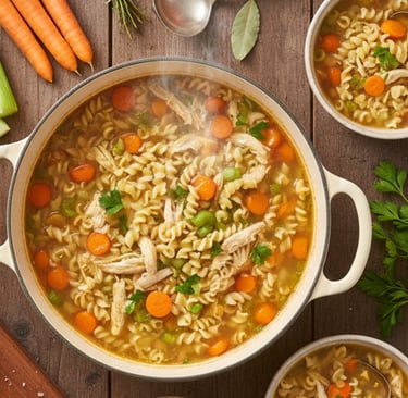 Chicken noodle soup is the ultimate comfort food that warms your soul, heals your body, and brings back memories of home. This classic dish has been a beloved staple for generations, cherished for its ability to make you feel better whether you're fighting a cold, having a rough day, or simply craving something warm and nourishing. There's a reason people call it "Jewish penicillin" - this soup truly has healing powers!
