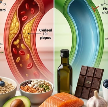 This distinction matters profoundly for dietary strategy. Reducing LDL quantity (through statins, fiber, or plant sterols) addresses one part of the risk equation. But preventing LDL oxidation through dietary antioxidants—polyphenols, vitamin E, lycopene, and other compounds in food—addresses the mechanism that actually causes arterial damage. The most complete dietary cholesterol strategy targets both.